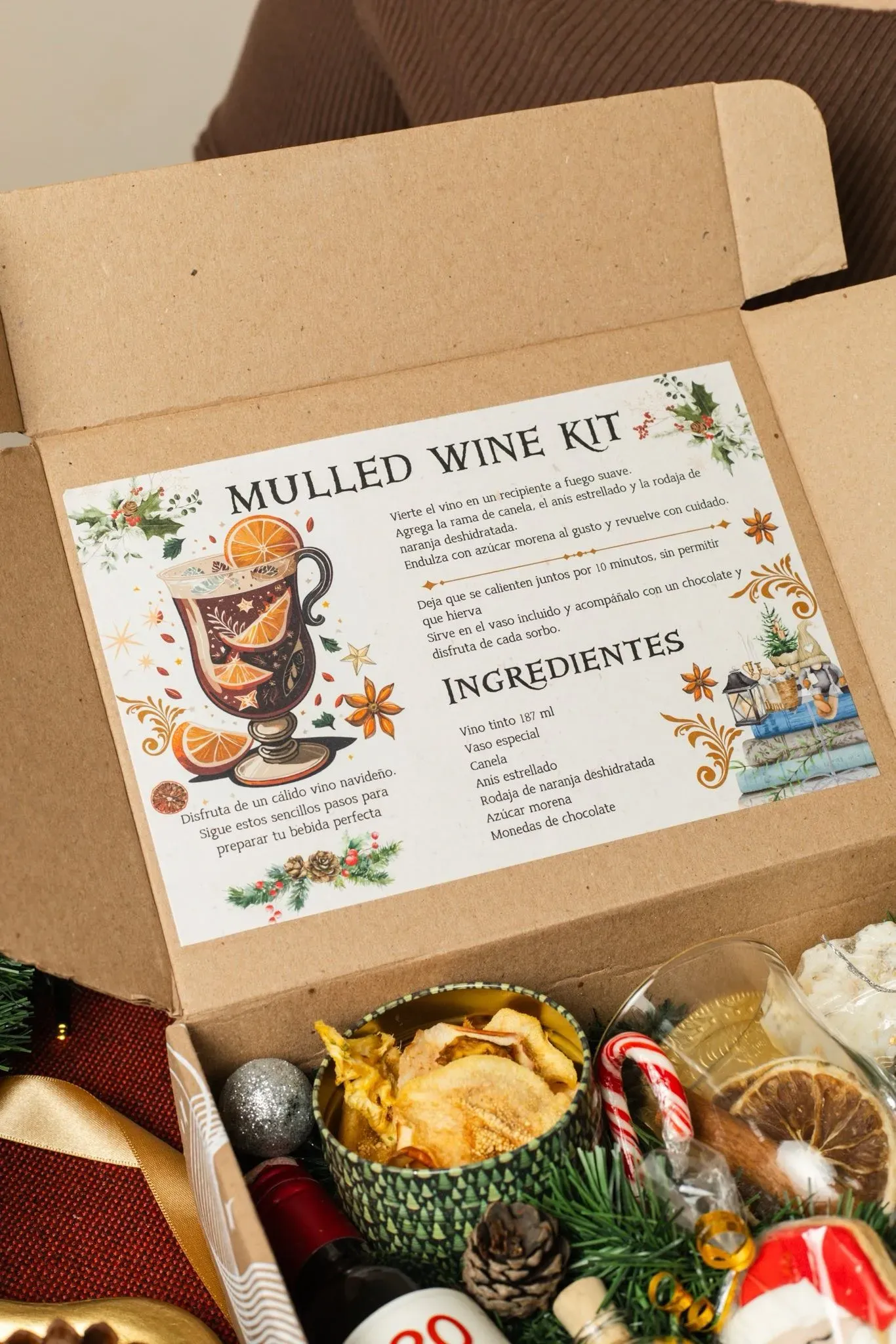 Todo lo que necesitas para preparar y disfrutar un auténtico vino caliente navideño. Nuestro kit incluye: